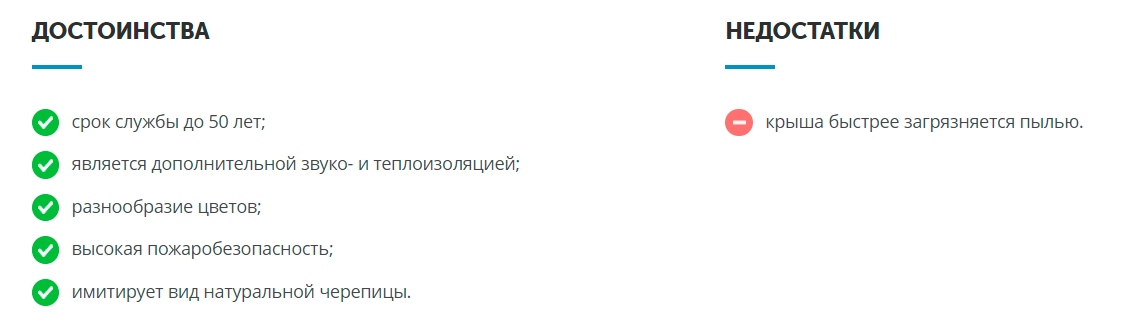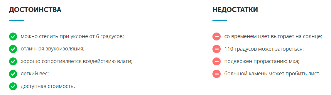 В таком виде кровли есть и недостатки, что требую внимательного размышления, стоит или выбирать именно этот вид материала. К недостаткам относится ее низкая огнестойкость и частый уход за материалом кровли на период срока службы.