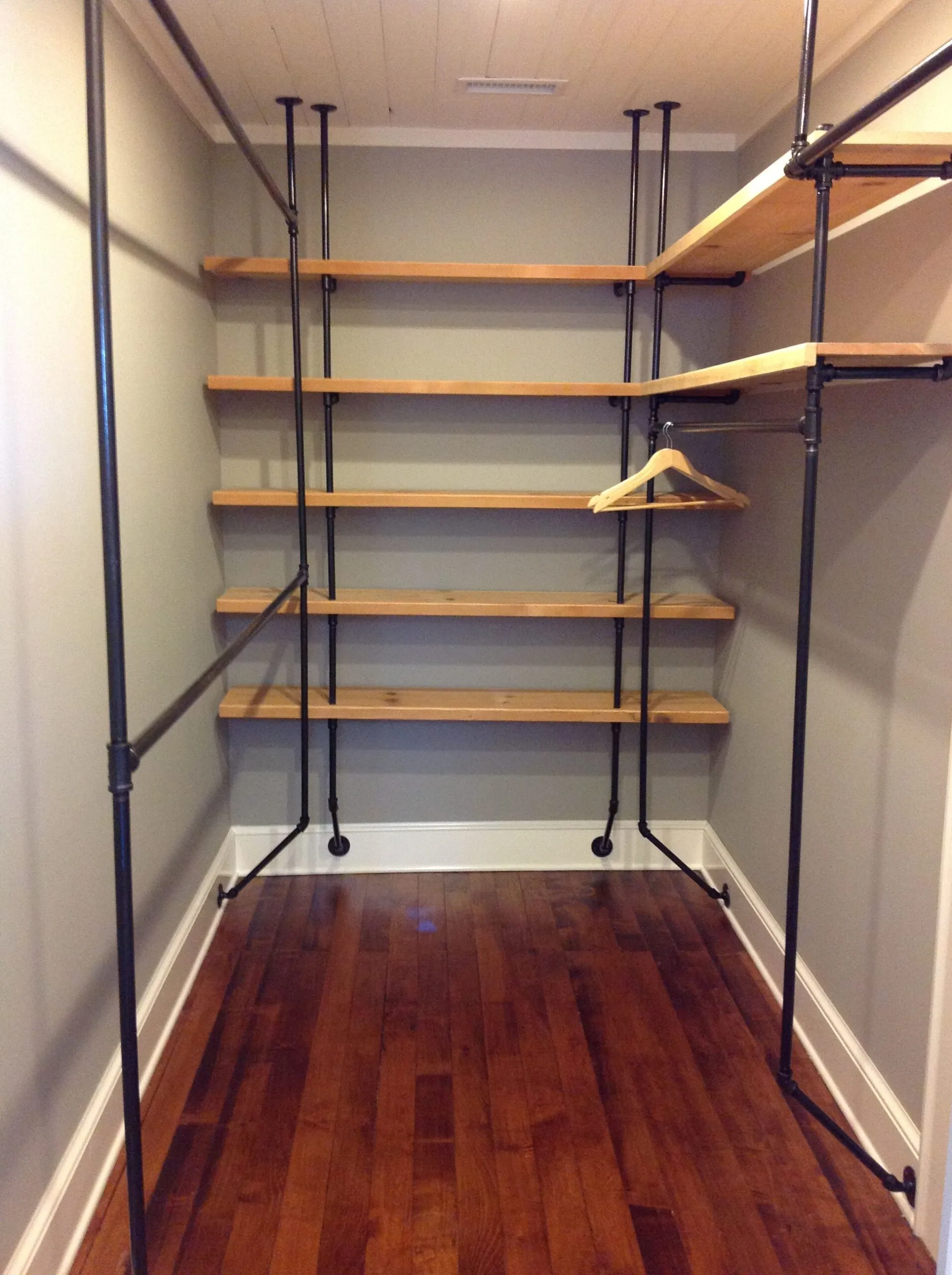 После того, как основной каркас будет готов, необходимо определиться с полками. Можно сделать полки в гардеробную своими руками или приобрести готовые. Но первый вариант предпочтительней и экономней.