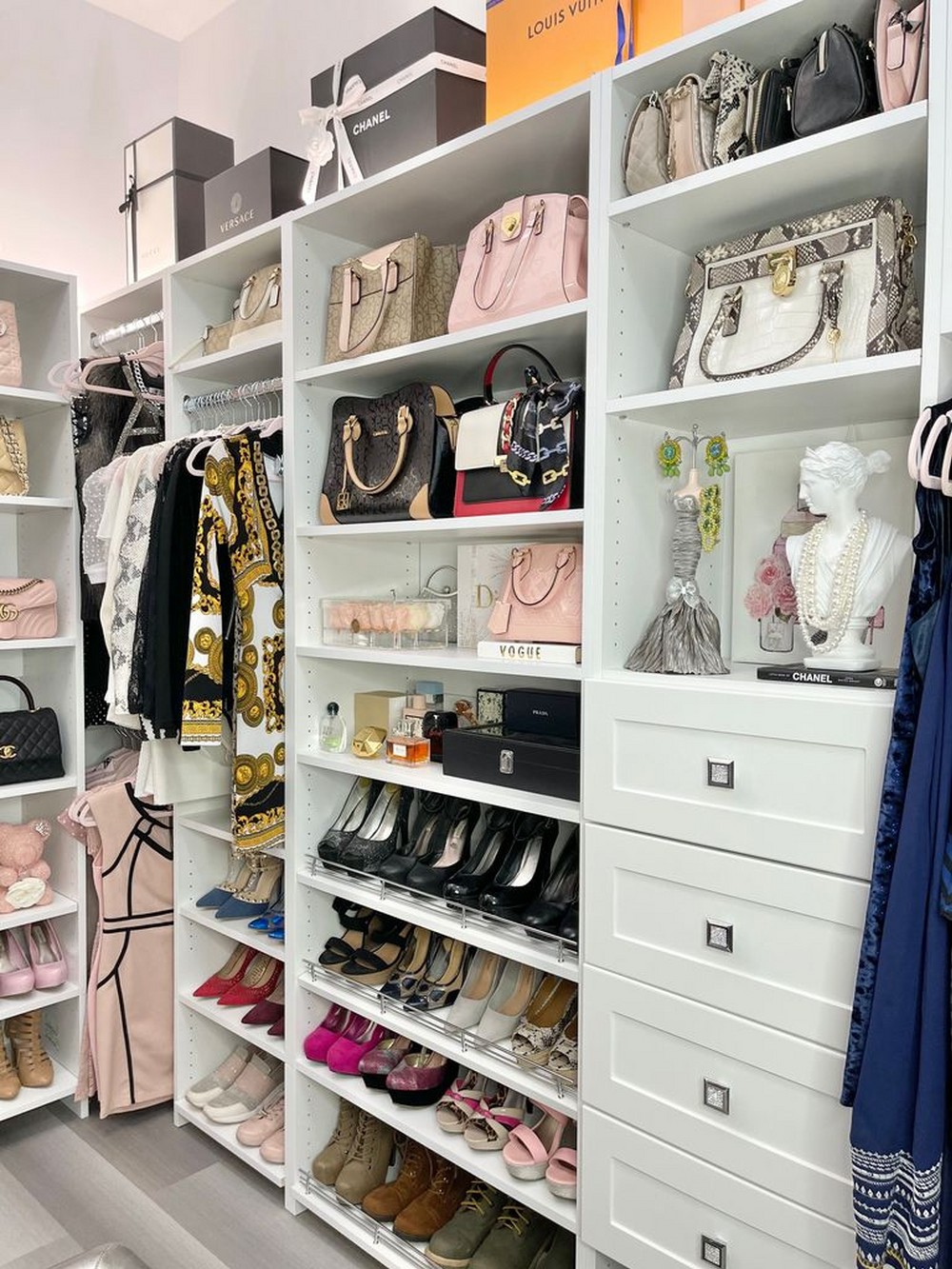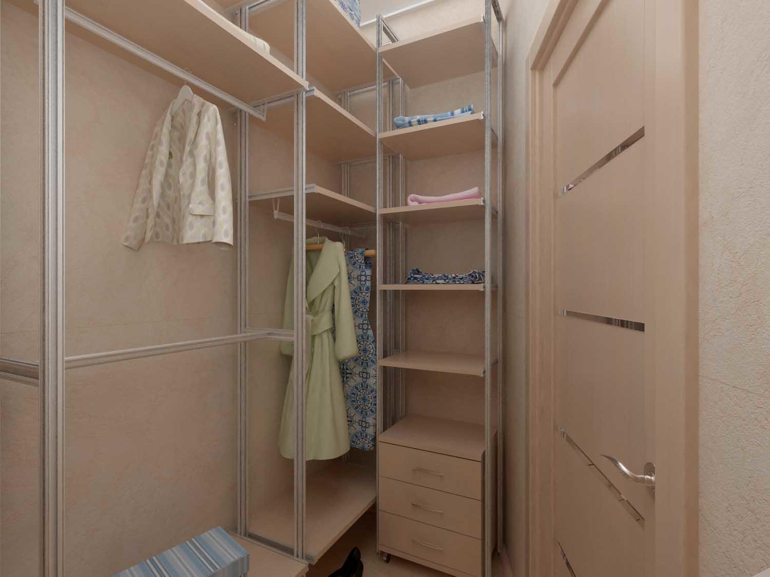 проект гардеробной комнаты с множеством полок для хранения вещей