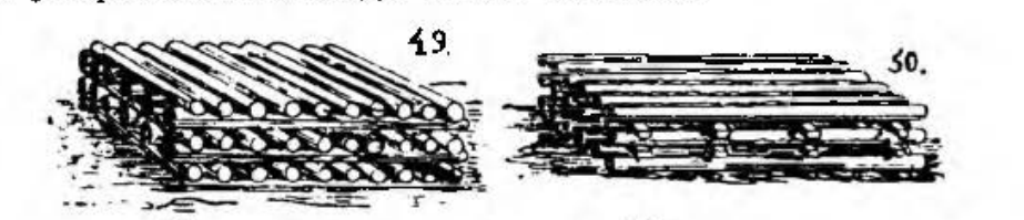 Рубка деревьев, как сказано в книге, происходила осенью. А доставка стволов на место происходила уже по первому санному пути. Срубленное дерево сразу же очищалось от коры, дабы избежать червоточин. Для высушки брёвна складывались в «костры» или «штапели» с прокладками для того, чтобы воздух со всех сторон мог высушивать древесину. На это нужно не менее 8 месяцев. А вот для хорошей просушки требуется 2 года. А для предохранения сложенных брёвен от дождя и снега, над ними устраивался навес.