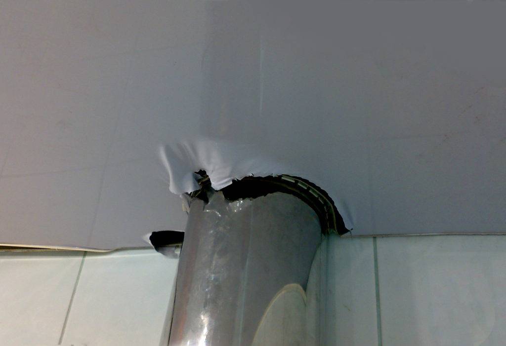 Также не удастся справиться самостоятельно с дефектом, если оторвался гарпун по причине сильного натяжения или заводского брака. Дело в том, что изготовитель мог неправильно выкроить полотно. Кроме этого, при затоплении помещения с ПВХ полотном без помощи профессионала не обойтись.