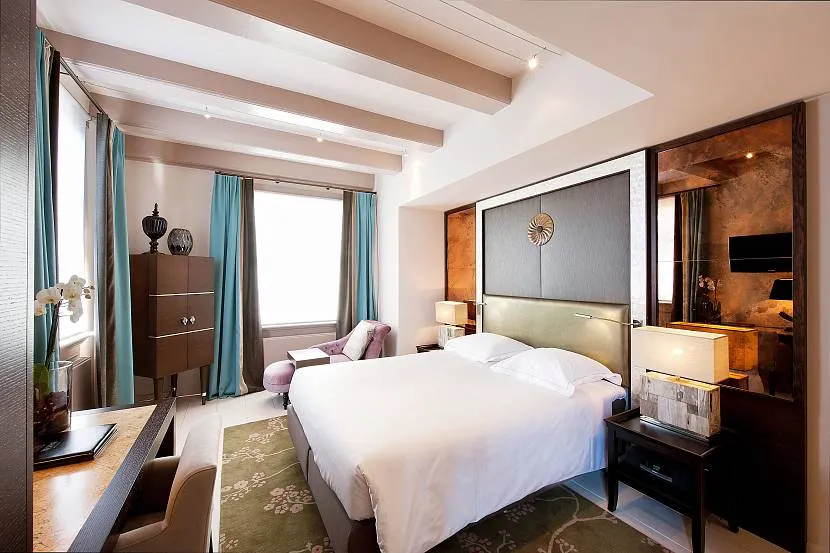 При помощи двойных конструкций значительно улучшается зрительное восприятие спальни.