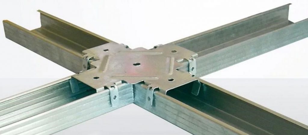 - Устанавливаются перемычки, которые можно сделать из направляющего профиля. Они тоже закрепляются саморезами, и таким образом получается сеть из профилей;