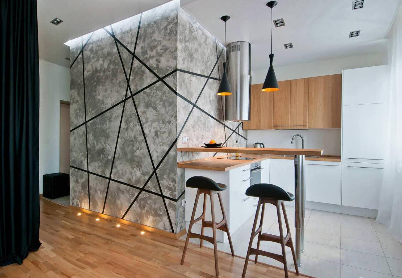 Единственный минус – это неминуемая потеря в высоте помещения. Если у вас очень низкая кухня, то натянутое полотно украдет от вашей базовой высоты еще как минимум 5 сантиметров – и как бы ни было прекрасно то дизайнерское откровение, которое воплотится в жизнь, все же острый дефицит высоты будет ощущаться визуально и портить весь достигнутый эффект. По этой причине многие обращаются более классическому варианту и выполняют потолок на кухне из гипсокартона.