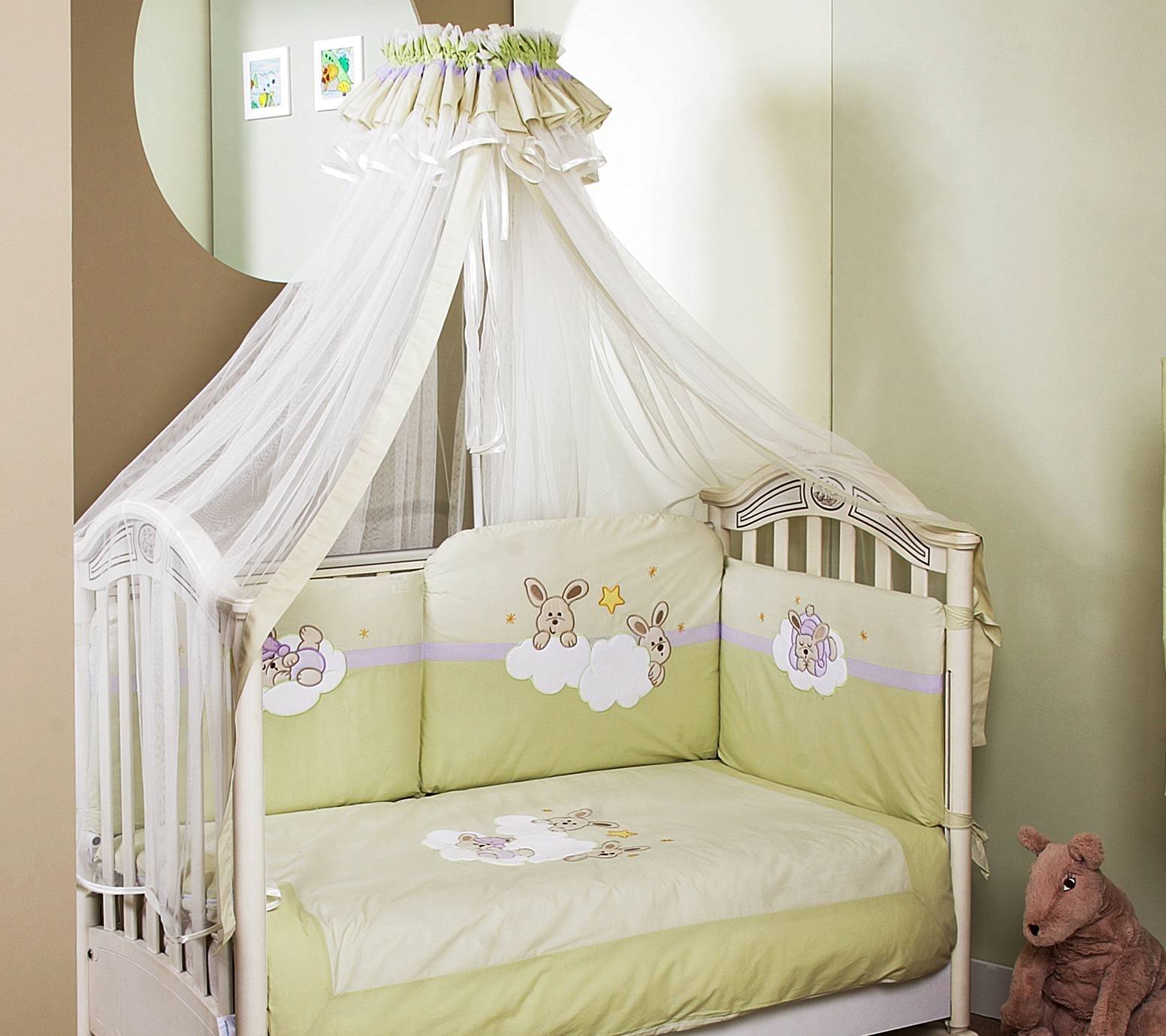 Лучше всего для этих целей использовать ткани, такие как фатин, поскольку он хорошо пропускает воздух, а для младенцев это чрезвычайно важно.