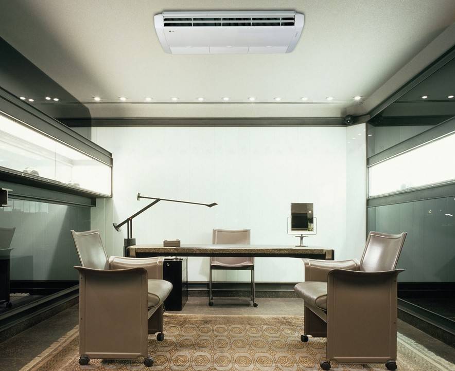 Внешне кондиционеры этого типа выглядят очень аккуратно и лаконично – эстетика оформления интерьера и его стилевое единообразие не нарушается. Идеально подходит этот тип потолочных кондиционеров для офиса.