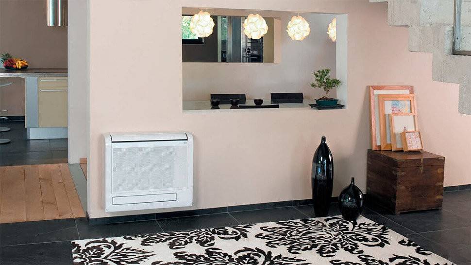 Связка из напольного и настенно-потолочного блока образует очень мощную систему кондиционирования, которая способна охладить большие площади. Напольные блоки с виду похожи на современные радиаторы отопления, поэтому отлично впишутся в интерьер.