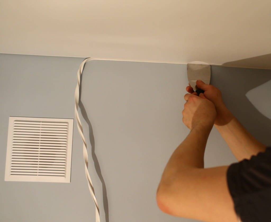 Установка потолочного плинтуса на натяжной потолок своими руками требует проведения ряда подготовительных работ: