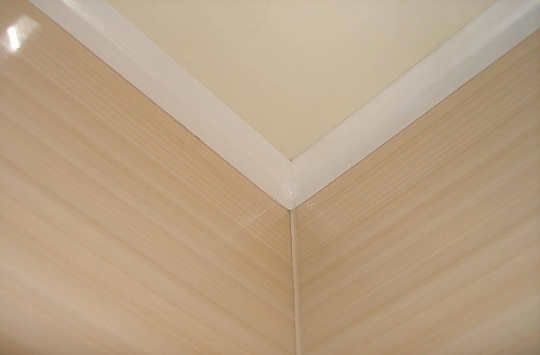 Через год-полтора после установки облицовки в верхней части стены, примыкающей к потолку, появляется серая пыльная полоса, убрать которую, закрасить или замаскировать практически невозможно, ну, если, конечно, не установить простенькую декоративную планку или тот же плинтус.