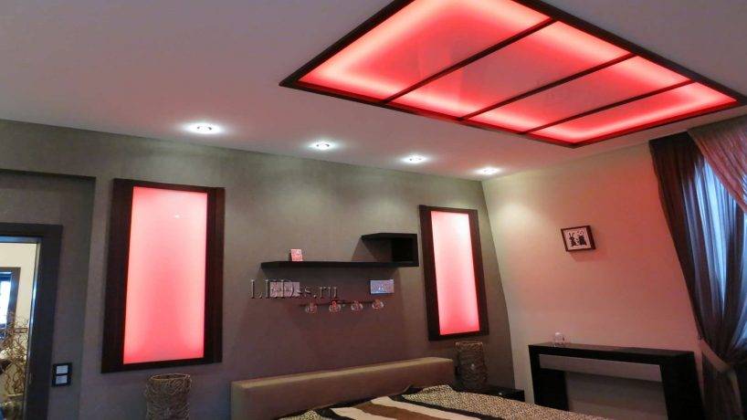 Подсветка потолка светодиодной лентой может быть сделана в разных вариантах: