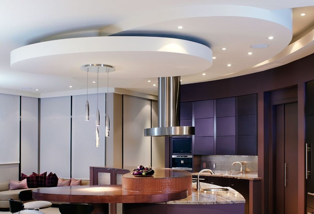 Интересные варианты дизайна потолков из гипсокартона в кухне