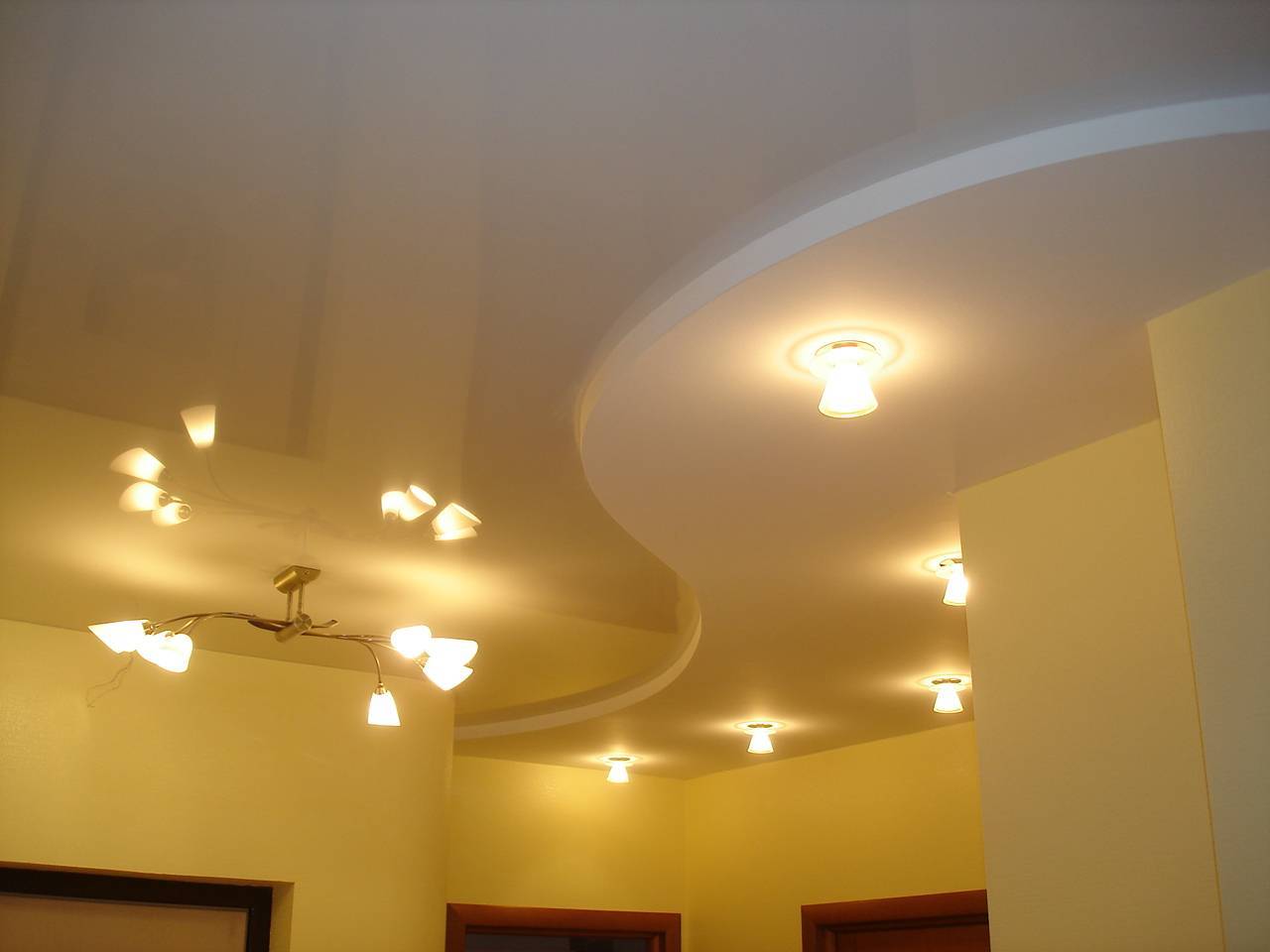 Для высоких помещений допустимо применять многоуровневые конструкции. Это могут быть: