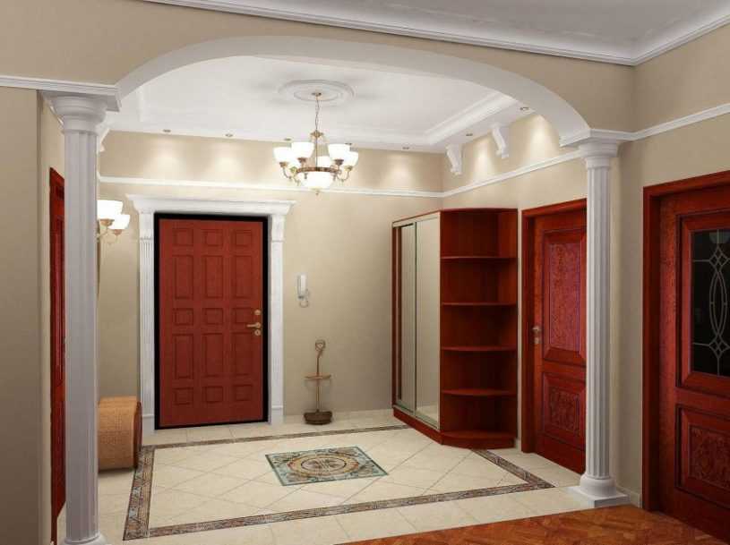 Стандартные варианты удобны и в больших прихожих, они оставляют простор для декорирования лепниной, молдингами, фотопечатью, росписью или драпировкой.