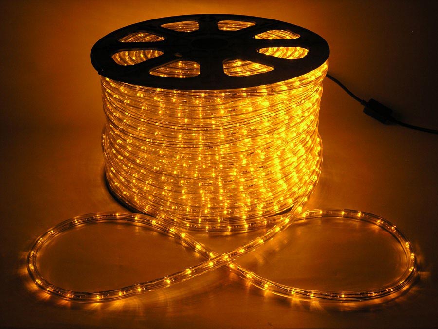Дюралайт внешне напоминает прозрачный шнур, внутрь которого заключены лампы. Этот шнур очень прочный, долговечный и защищен от влаги. Бывает дюролайт со светодиодными лампами и с лампами накаливания. С точки зрения экономии лучше выбирать вариант со светодиодными лампами, отличающимися сниженным потреблением электроэнергии.