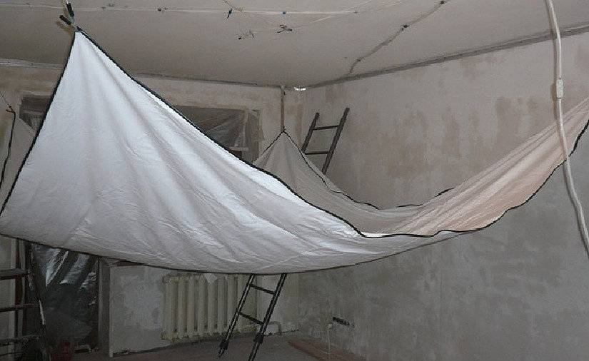 - поскольку натяжка ткани производится «на глаз», при наличии швов могут быть искривления. Поэтому лучше использовать такой метод для помещений, не требующих большой площади полотна;
