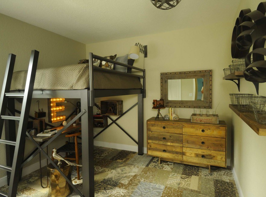 Дизайн этой комнаты создавался по пожеланиям непосредственно подростка проживающего в ней. Спокойные цвета и намек на стиль Нью-Йорского лофта — именно его идеи. К стати, кровать и письменный стол остались от предыдущей, «детской» обстановки.