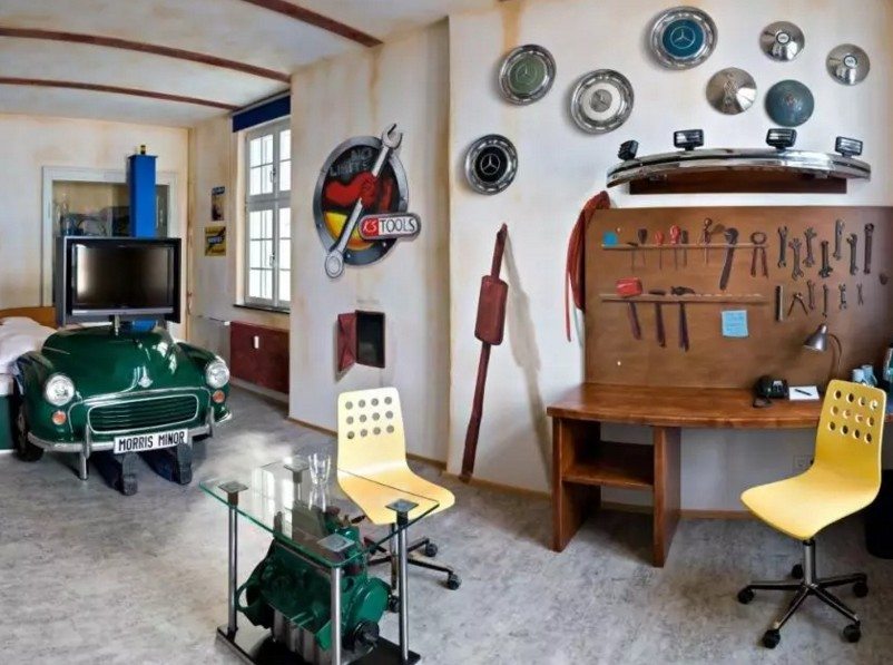 Дополнение оформления декором и аксессуарами зависит от выбранного направления, а также от функциональности, практичности и личных увлечений подростка. Например, в морском стиле в угол можно поставить сундук, а для китча украсить стену красочными плакатами, для хай-тека установить аквариум с красивыми рыбками и подсветкой. А также для украшения подойдут следующие идеи: