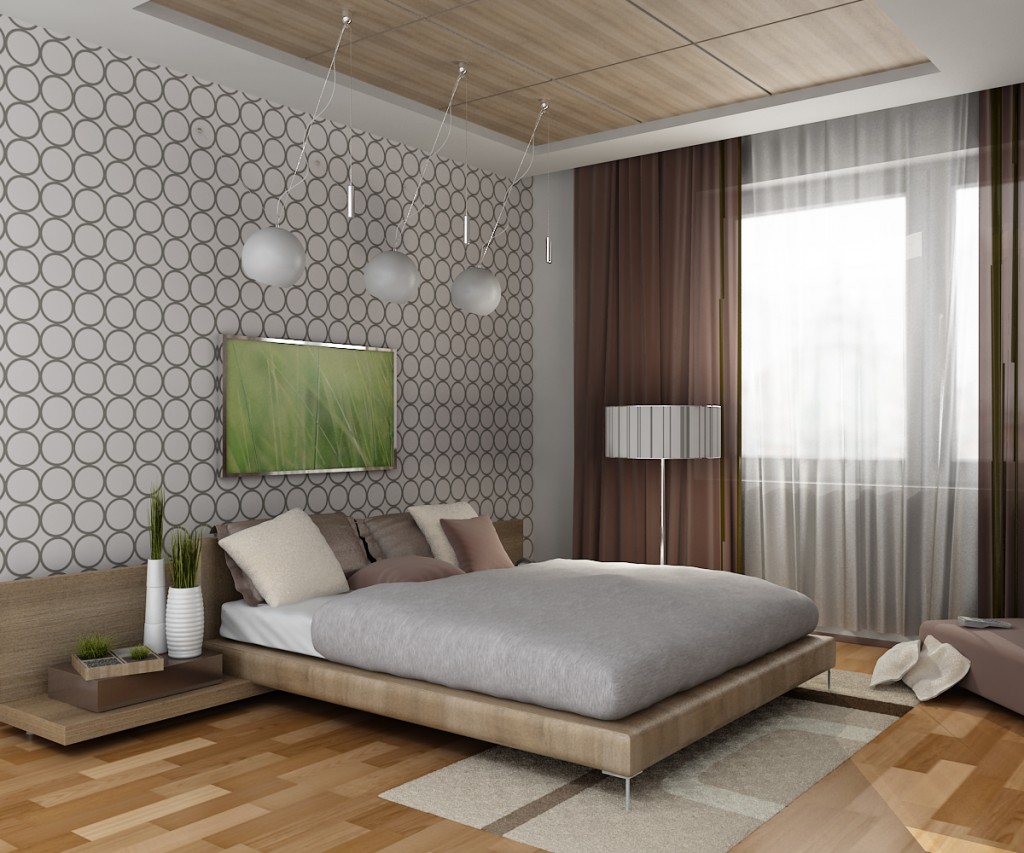 Для спальни используйте «дышащие» обои. Например, бумажные или на флизелиновой основе. Неплохой вариант – тканевые обои, а, если вы поклеите потолки обоями под покраску, то несколько раз сможете сменить их цвет.