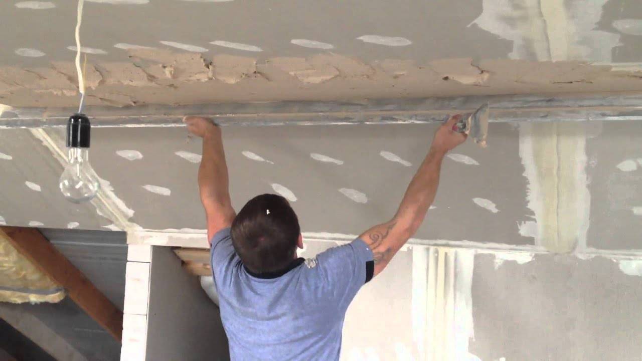 - После крепежа плит приступают к заделке шпаклевкой швов и вдавленных шурупами мест шпатлевкой.