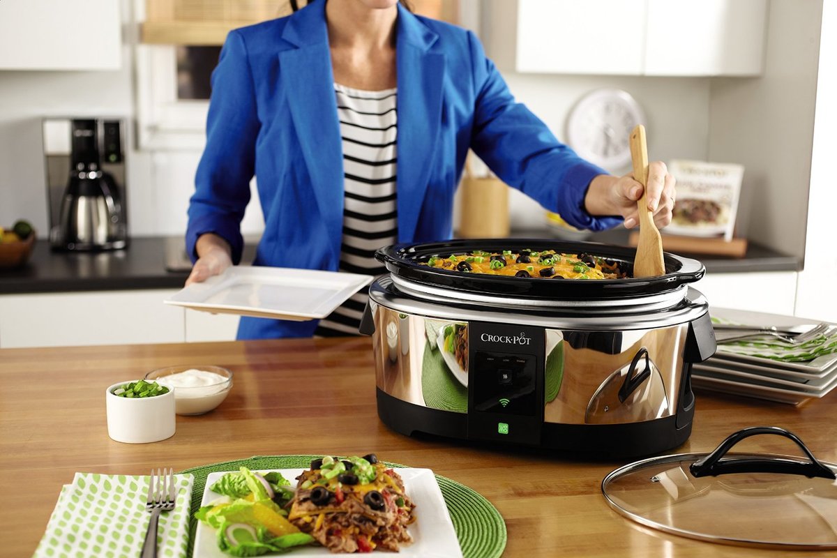 Многие из нас мечтают, чтобы после работы дома ждал теплый и вкусный ужин. И если у ваших близких по той или иной причине не получается порадовать вас, с этой задачей отлично справится многофункциональная мультиварка Croc Pot Wemo Smart Cooker. Кроме множества режимов приготовления блюд и целой кулинарной книги внутри, мультиварка Croc Pot Wemo Smart Cooker обладает еще одним плюсом: вы можете управлять ей дистанционно, путем синхронизации со своим смартфоном через Wi-Fi. Заложите в начале дня необходимые продукты внутрь, а по пути домой отправьте на гаджет сигнал о начале готовки, и к вашему приходу уже все будет готово. Такая модернизация привычной мультиварки поможет сохранить время и многодетным мамам, и занятым работникам офисам, и вечно жующим на ходу студентам.