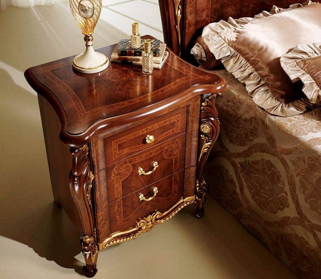 Для классического стиля выбирайте тумбочки с красиво выделенной резьбой, что прибавит в ваш интерьер нотку элегантности.