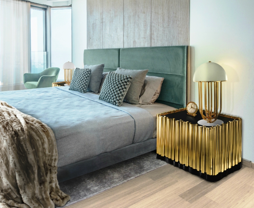 Выбор прикроватной тумбочки зависит не только от размеров конструкции, но и от общего оформления спальни. Современный дизайн допускает и даже приветствует игру контрастов и фактур, поэтому необязательно подбирать тумбу в тон к изголовью кровати.