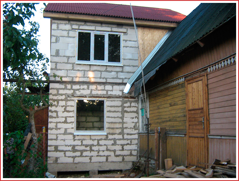 - Пристройка к дому своими руками из пеноблоков будет иметь значительный вес, и после установки она не должна повести за собой основное строение.