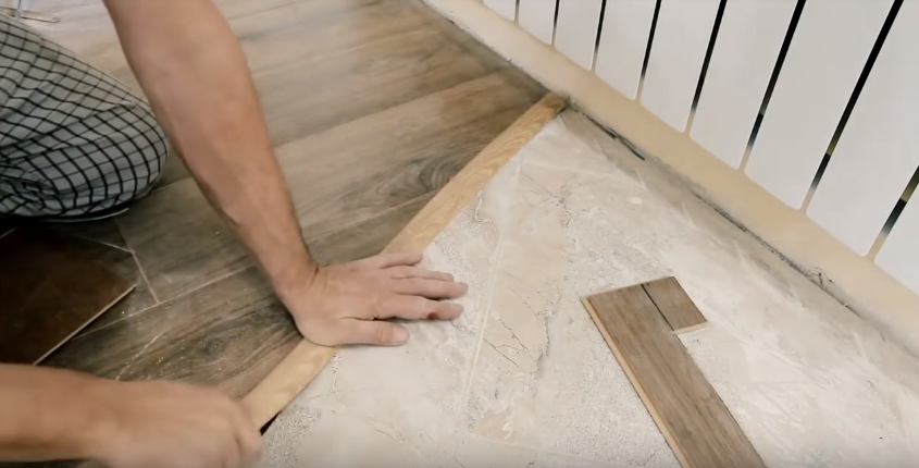 Как установить пробковый компенсатор между плиткой и ламинатом