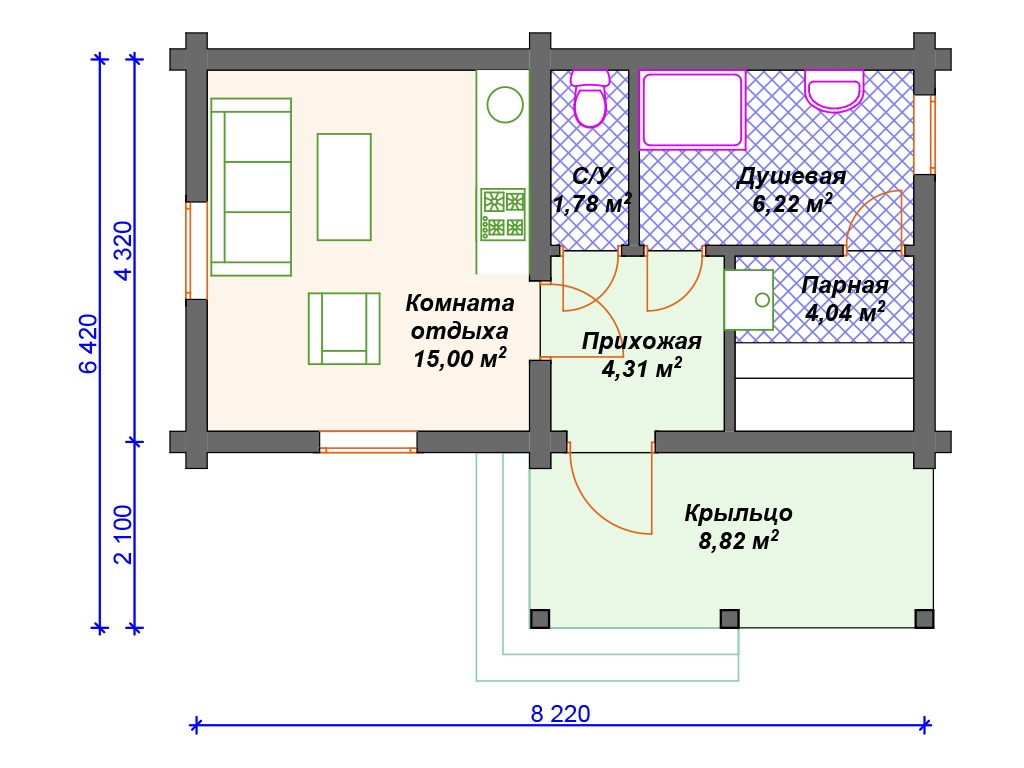 Минимальный состав помещений следующий: парилка, моечная, комната отдыха и предбанник