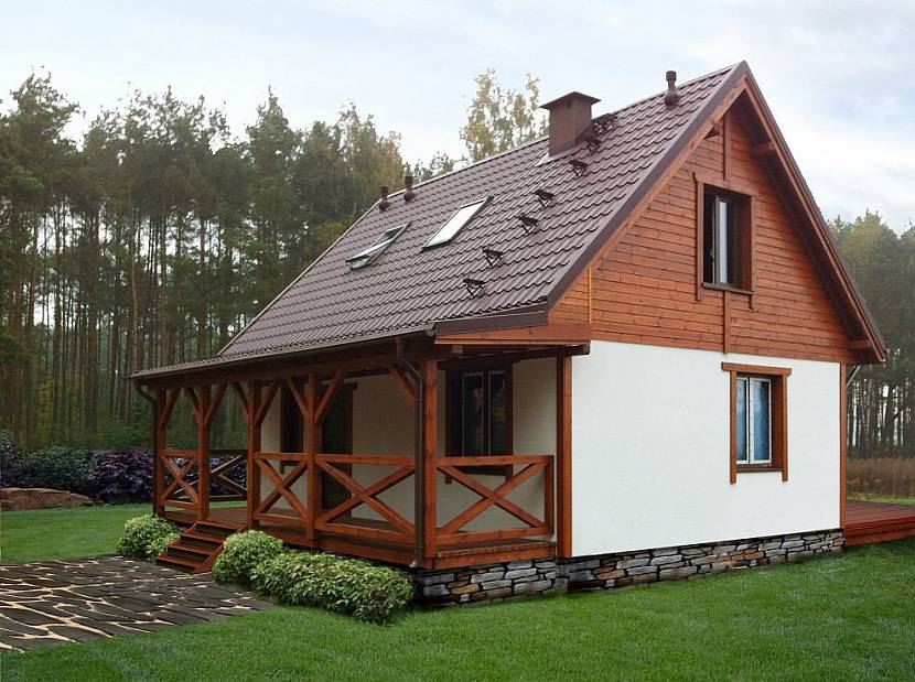 Каркасный небольшой одноэтажный дом с мансардойИсточник ooogidrostroy.ru