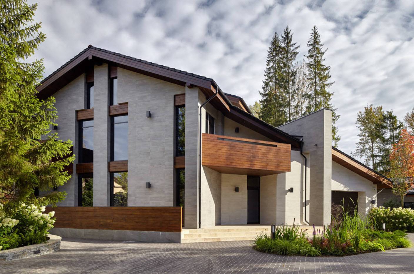 В проектировании современных загородных коттеджей используются более сложные архитектурные решения: