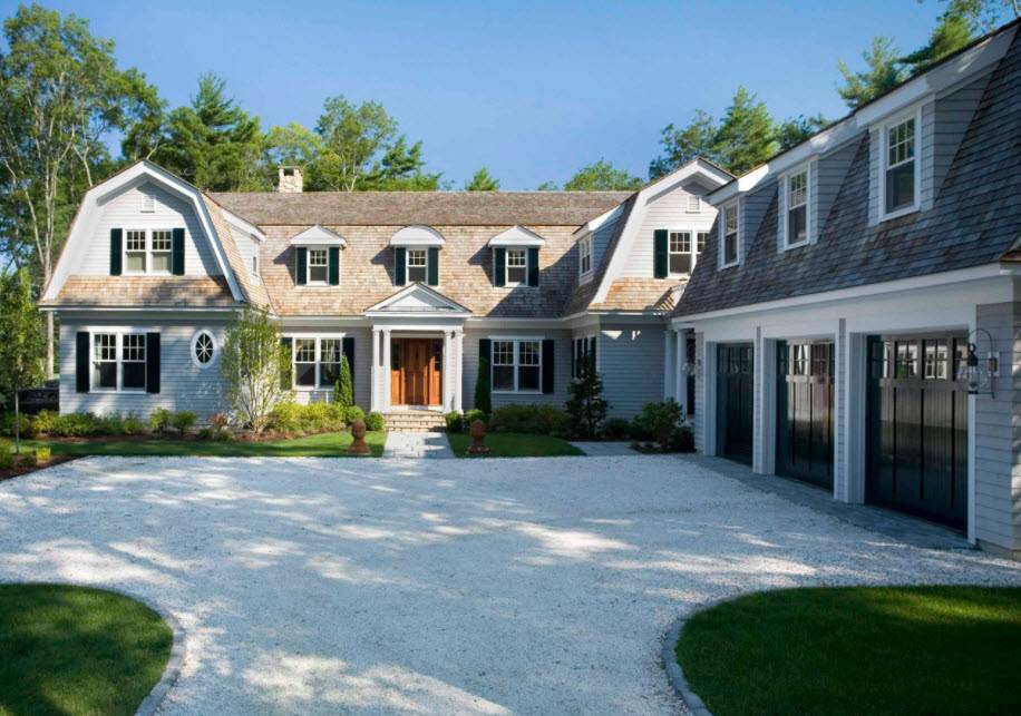 Один из самых популярных вариантов на территории страны – четырехскатная ломаная крыша. Именно этот тип имеет менее сложную конструкцию, стропильные системы создаются и оборудуются гораздо проще, а в финансовом плане этот вариант гораздо дешевле, чем двухскатная крыша. Кроме того, положительным фактором станет возможность оборудование максимально просторной мансарды.