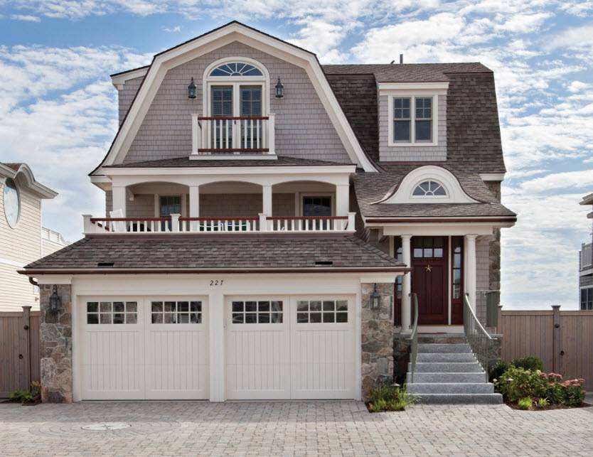 Балконы во фронтальной части мансарды – это сооружения, которые можно построить только на этапе сооружения и обустройства чердачного этажа. Преимущества этого варианта – экономичность и простое устройство.