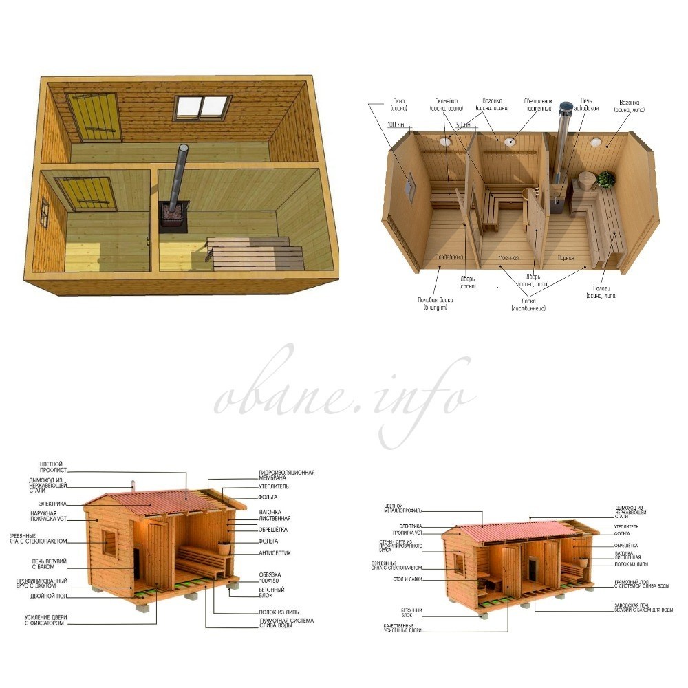 Самым оптимальным вариантом проекта бани считают бани «6 на 4». Как правило, они включают следующие помещения: