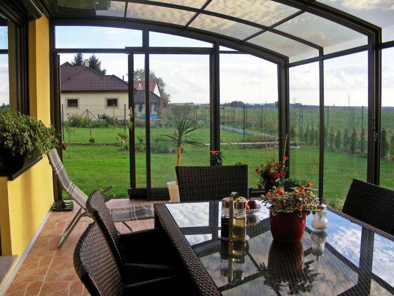 Установив раздвижные двери для веранды можно трансформировать закрытую веранду в открытую.