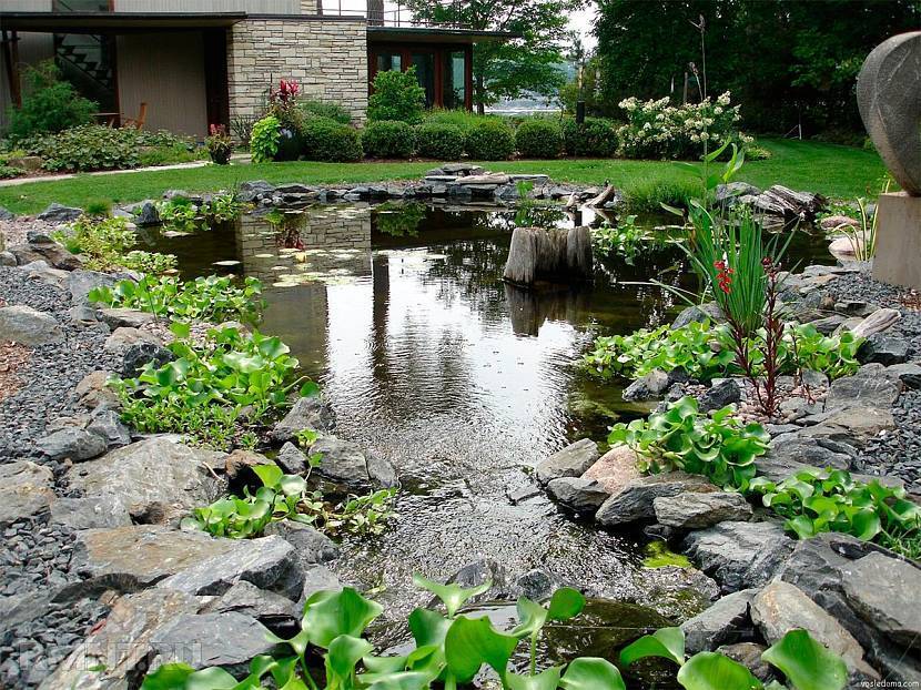 Важно знать, что за большим водохранилищем проще ухаживать. В нем легче создается стабильная и устойчивая экосистема. Насколько позволяет свободная площадь участка, таким и будет по размеру будущее творение