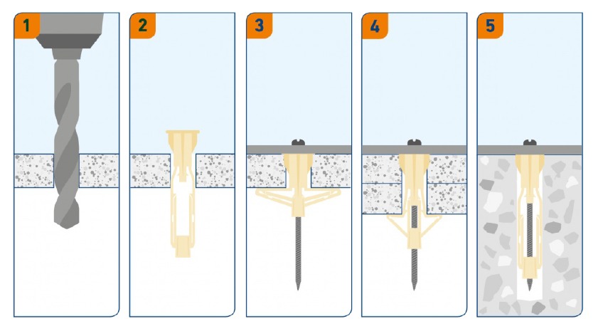 - анкерные метизы, позволяющие надежно крепить конструкции к слоистым либо многопустотным вариантам бетонной поверхности;