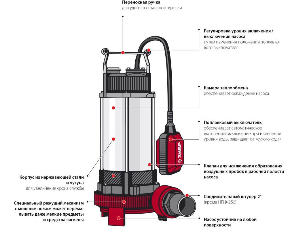 Главные требования к данному устройству – производительность, глубина погружения и напор.