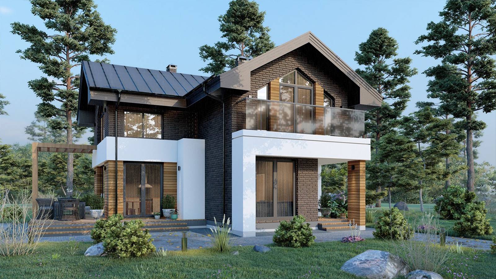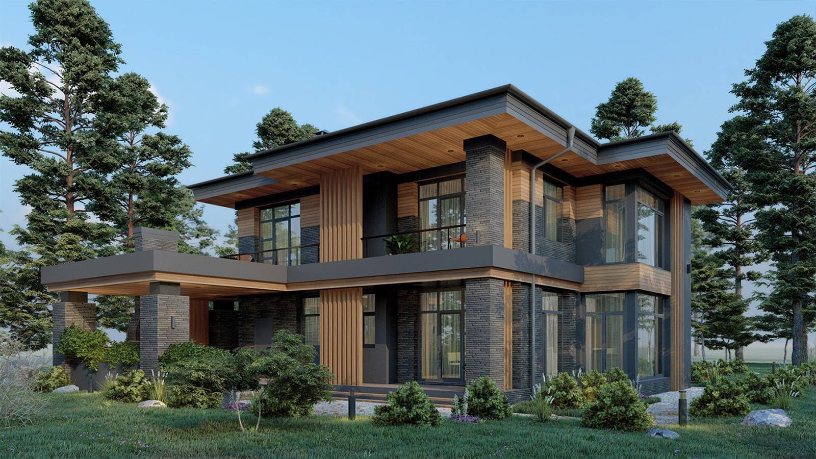 Благодаря визуализации вы сразу видите экстерьер своего коттеджа. Получаете спецификацию всех необходимых материалов до разработки документации.