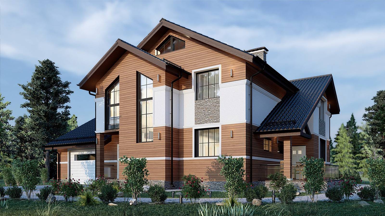 Благодаря профессиональной 3D-визуализации вы увидите цветные фотореалистичные изображения архитектурного объекта с применением текстур отделочных материалов. Таким образом, вы сразу можете видеть как будет выглядеть экстерьер со всех сторон.