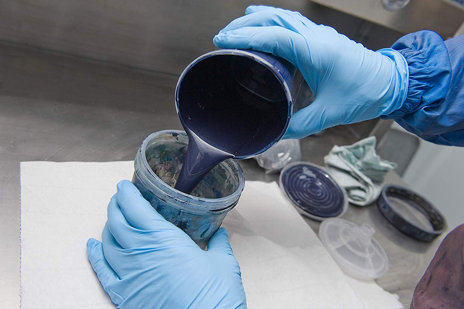 Краска состоит из отчищенной воды, несущей роль растворителя, красящего наполнителя, содержащего одну из приведенных выше основ, а также различных пластификаторов и присадок.