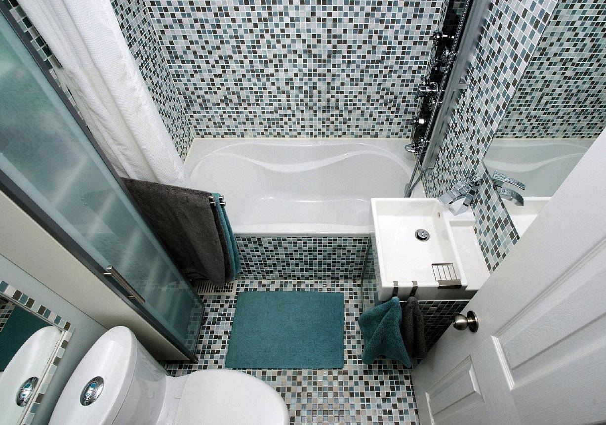 При реализации проекта можно воспользоваться готовыми идеями дизайна интерьера. Оригинально выглядит комбинирование 3 типов плит при отделке поверхностей, используются блоки прямоугольные средних габаритов, квадратные элементы и мозаичная кладка. Оттенки должны соответствовать выбранному стилю и тональности гаммы. При реализации схем необходимо учитывать комплектацию ванной.