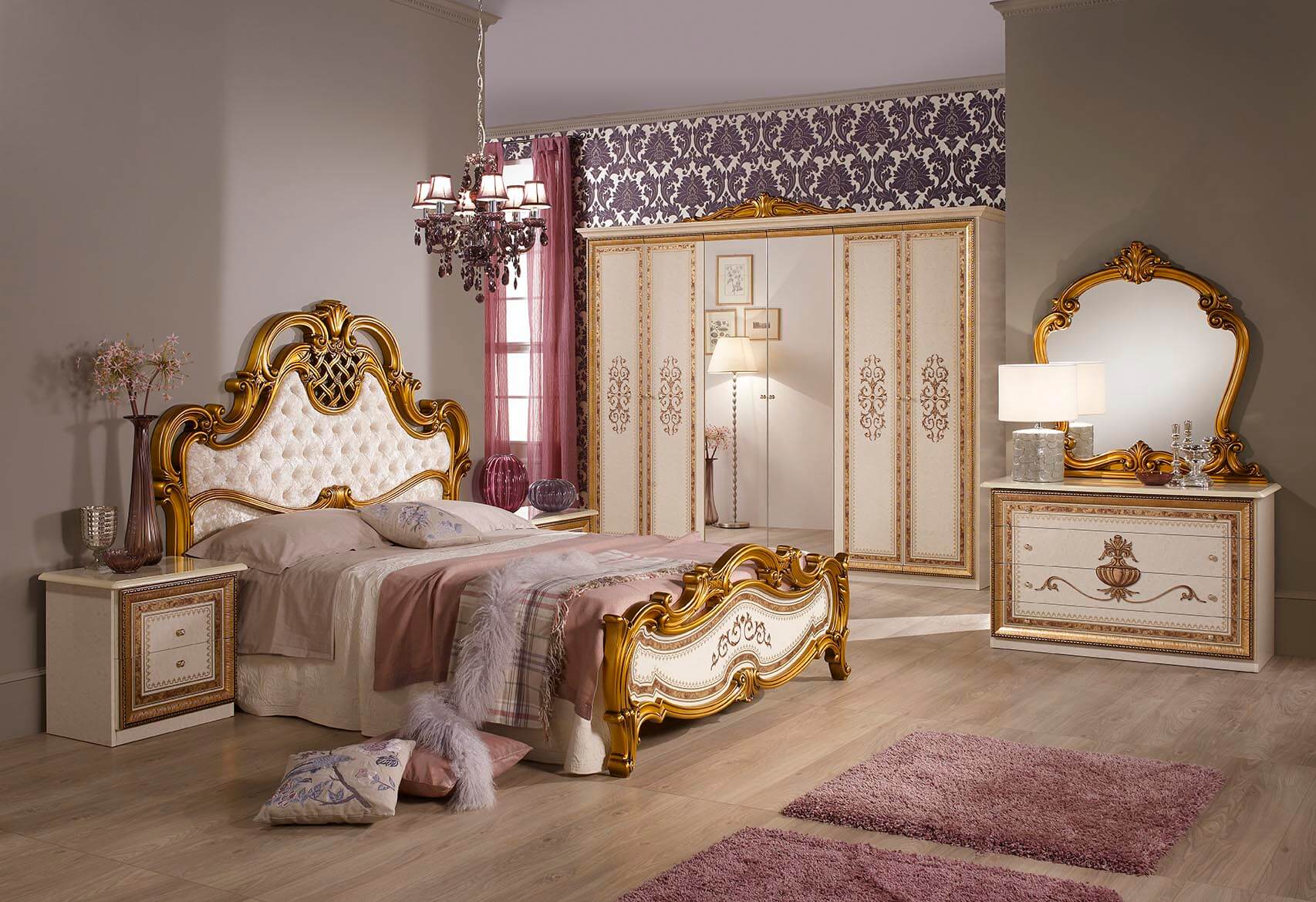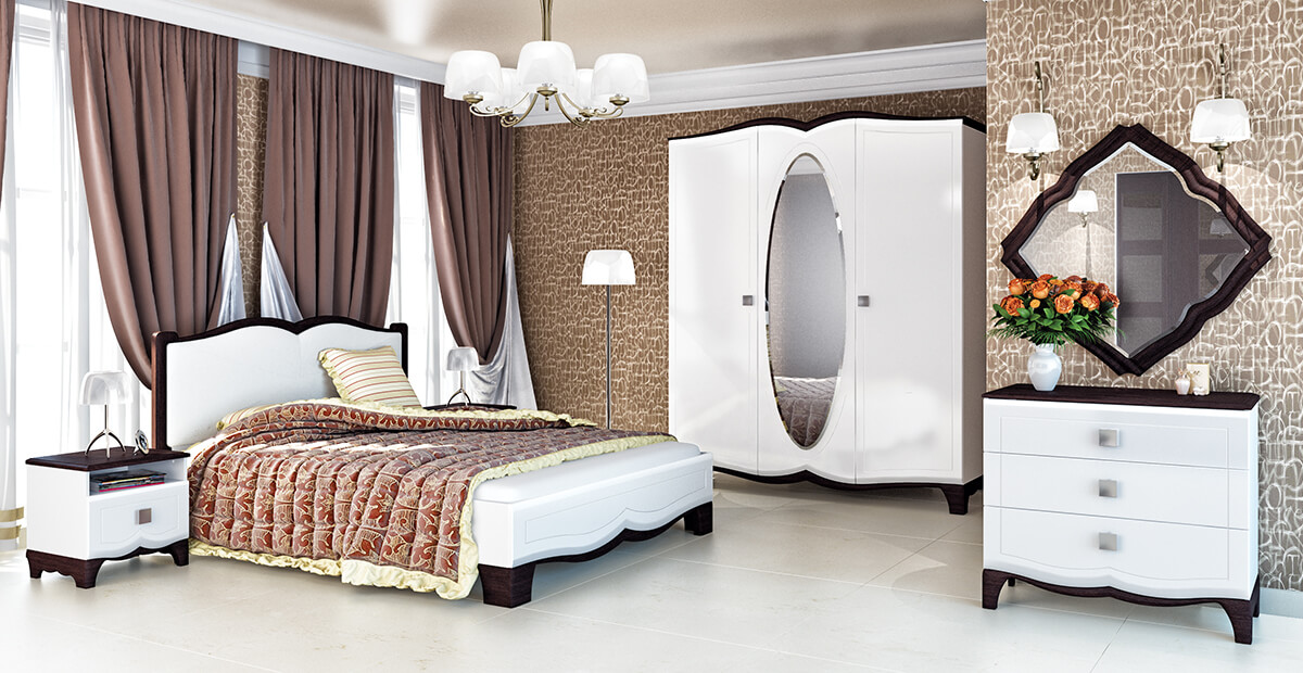 В оформлении спального гарнитура используют следующие виды декора:
