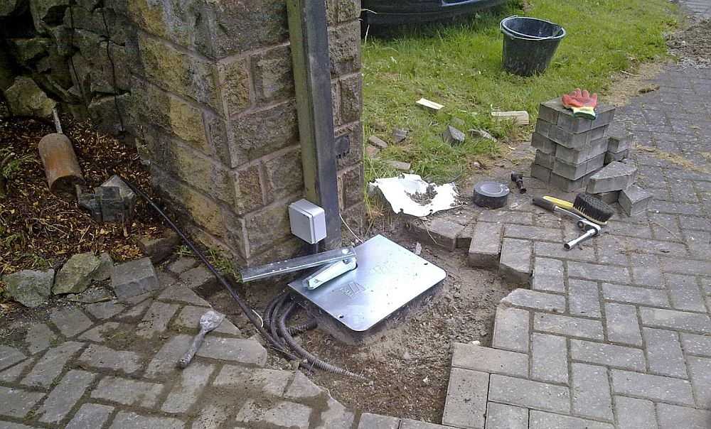 Если ворота открываются наружу — на улицу, то привод крепится на поверхности столба, которая обращена в сторону проема. При этом он выступает примерно на 20 см. Так как приводов для двустворчатых ворот два, то они заужают проем на 40 см. Это тоже нужно иметь в виду, особенно если это ворота в гараже. В этом случае стоит устанавливать привод, так, чтобы он оказывался выше машины и не мешал при маневрах.