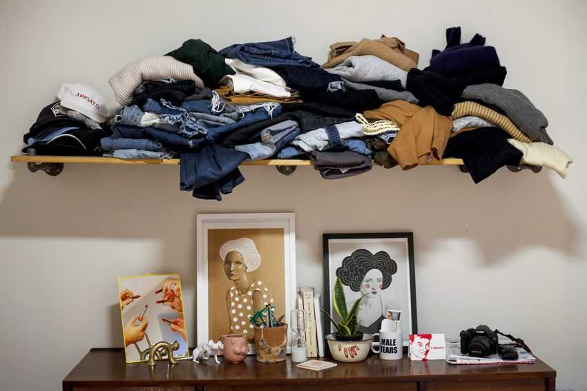 Широкие и громоздкие шкафы лучше поменять на более узкие, используя больше полок и стеллажей.