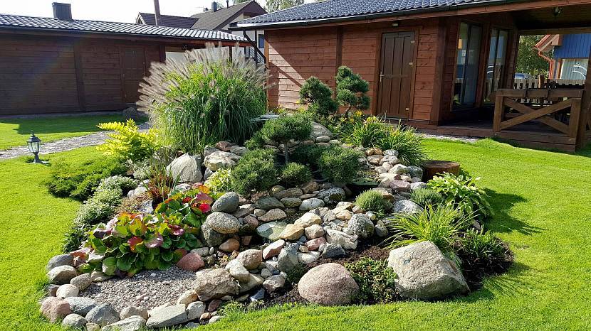 Альпийская горка посреди зелёного газонаИсточник www.pajuriovingis.lt