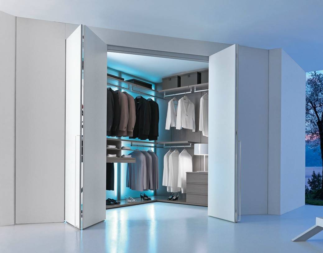 Если под гардеробную будет выделена целая комната, то логичнее будет отдать предпочтение удобной и стильной линейной конструкции. Если гардеробная будет располагаться в углу комнаты, то для нее следует выбирать полукруглые двери. Для угловых загородок для хранения одежды и обуви подойдет конструкция книжка. Для узких гардеробных-шкафов идеальными станут двери-пенал. Классические интерьеры дополнят прямолинейные двери, выполненные из натурального дерева. Для винтажных гардеробных идеально подойдут двери-гармошки с прозрачными ребрами-панелями. Гардеробные в современных интерьерах (лофт, хай-тек, минимализм) удачно скроют зеркальные двери техно.
