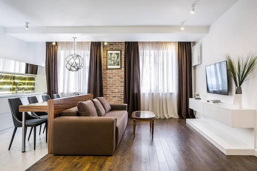 Единая стилистика с перегородкой-барной стойкойИсточник bezkovrov.com