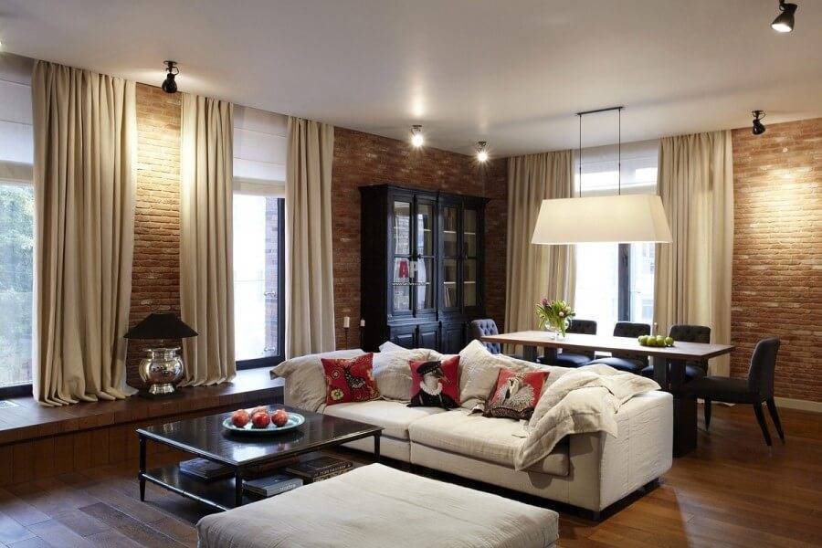 Правила обустройства гостиной лофт: