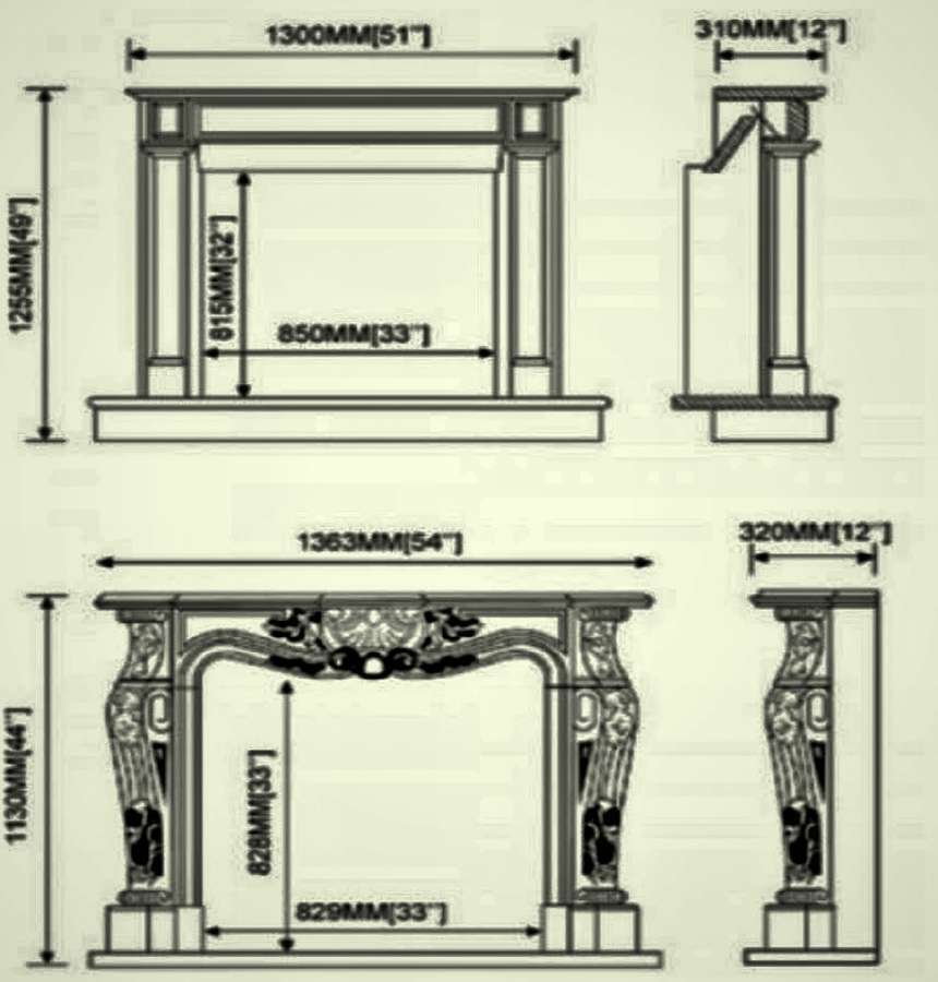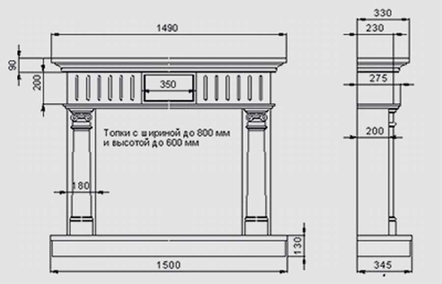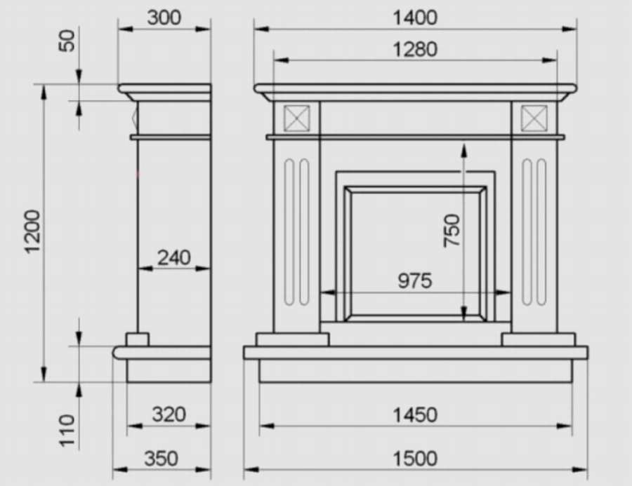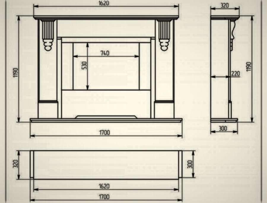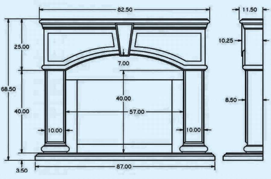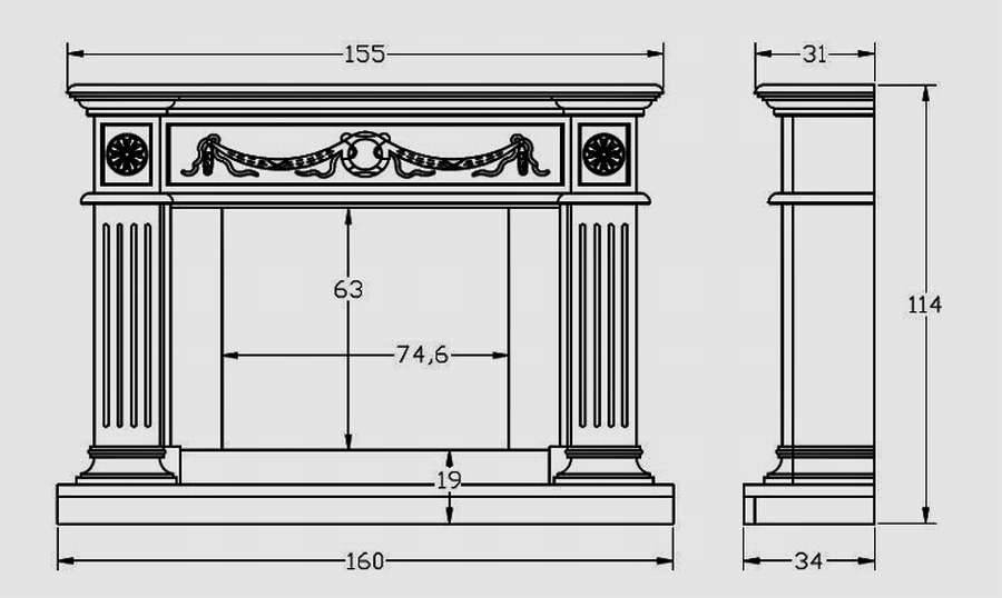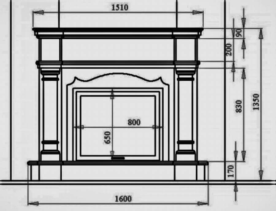 Чертеж с размерами фальшкамина из гипсокартона отражает возможность изменения модели в ходе монтирования. Например, стандартная классическая модель приобретет черты возвышенной классики, если украсить боковые выступы лепниной или полуколоннами. В результате модель окажется далеко не бюджетной.